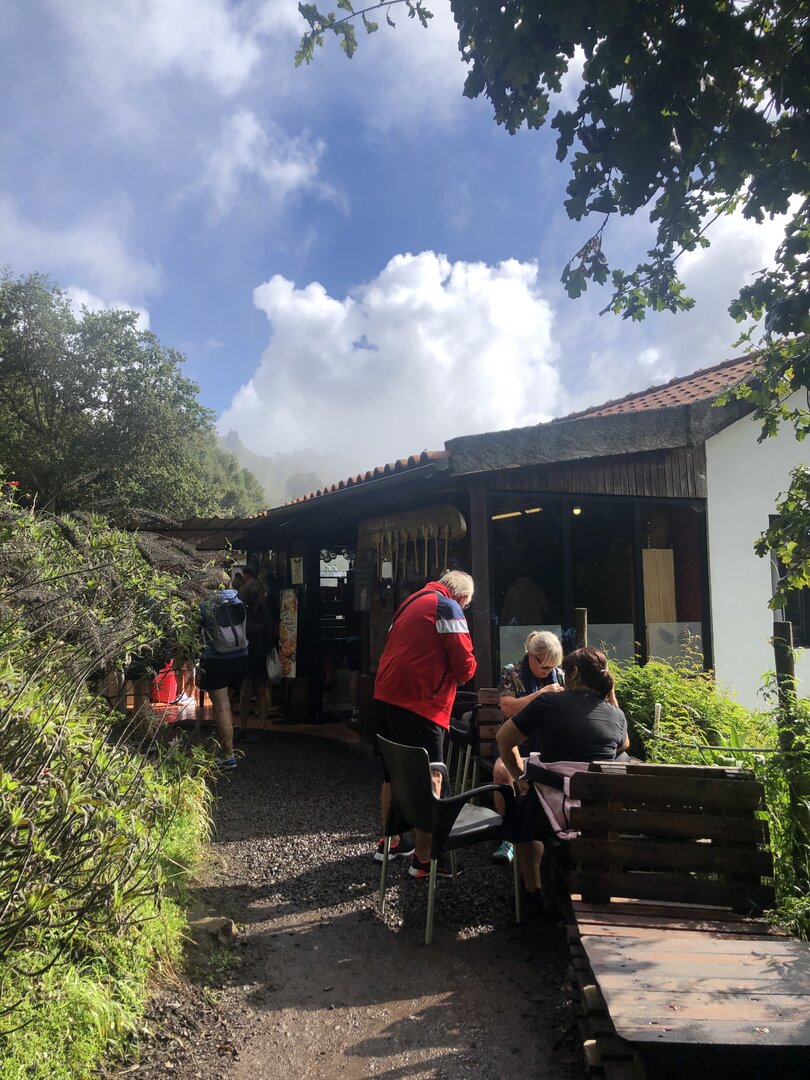 Hoje fizemos o lado leste da Ilha da Madeira onde visitamos  o pico do Areeiro, de 1818m de altitude. Saímos do hotel hoje de manhã  discutindo se valia a pena botar biquíni ou não. Mas o que nos aguardava no alto do pico era um nevoeiro denso e uma temperatura de 12 graus C. Todos os demais turistas estavam preparados menos nós, que prontamente viramos picolé. Mas como tudo vale a pena quando an alma não é pequena, foi ótimo. O nevoeiro desapareceu e pudemos admirar uma vista linda dos morros recobertos pela Floresta Laurissilva e caminhar pelas levadas que são caminhos d’água construídos pelos agricultores locais para conduzir a água das nascentes para irrigar suas terras.